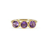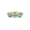 Our three stone brilliant cut diamonds ring is an elegant statement. Our 5mm precious and fine stones are set in our iconic hand pierced gold lace.